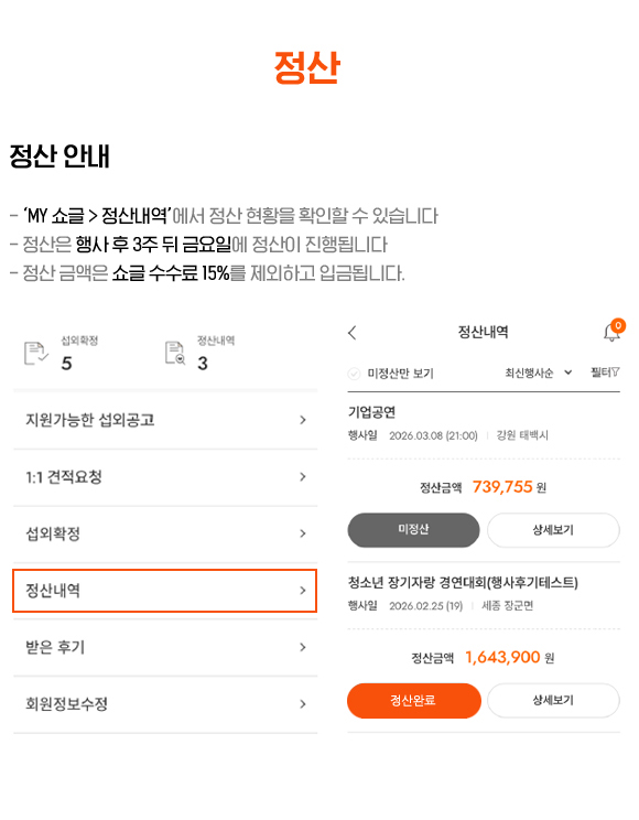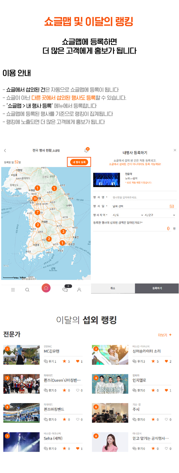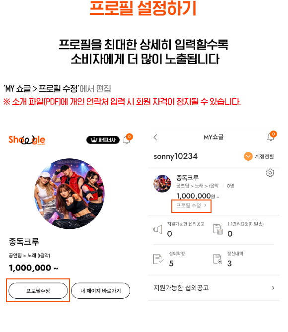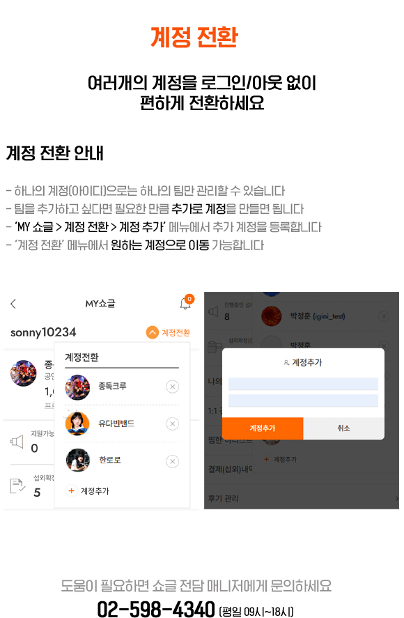 음향기기가 없다면 공연팀이나 쇼글 매니저에게 문의하세요.