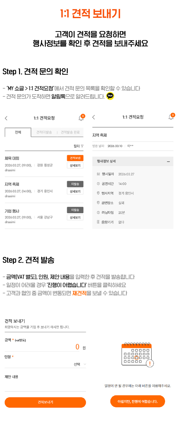 ‘1:1 견적요청’을 이용해 주세요!