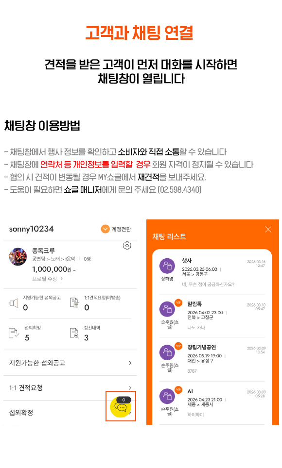 아티스트와 상세 조율은 채팅을 통해 할 수 있어요.